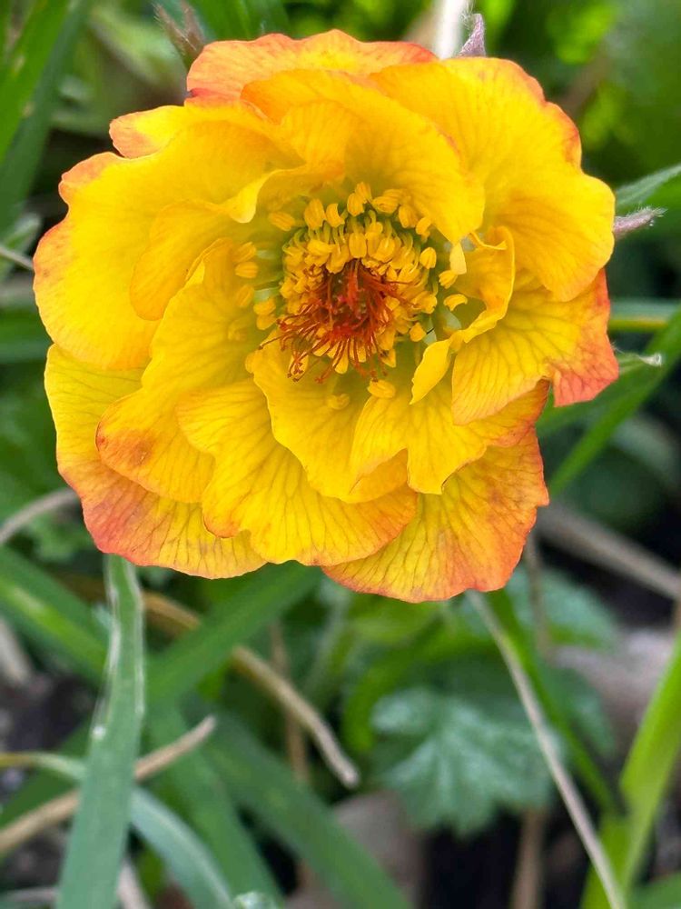 Geum coccineum/Rosaceae. Rosales. Magnoliopsida. Tracheophyta Commonly called/Avens Native Range/Southern Europe. Turkey Flower language/Promising future. Full love *Coccineum is from the Latin meaning “dyed scarlet” in teterence to the flower colour. Photo 3/18 9:47am 2023