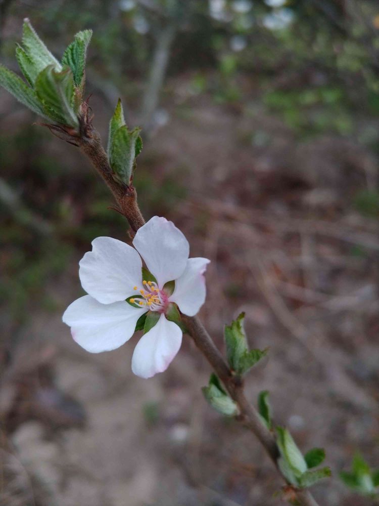 桜と同じで、先に花が咲いてそれから葉がでますから。