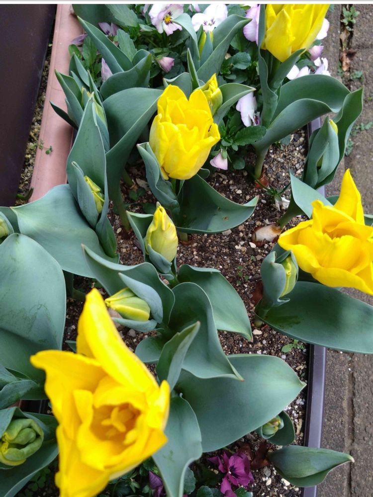 チューリップ🌷やムスカリなどなどプランターよ😄