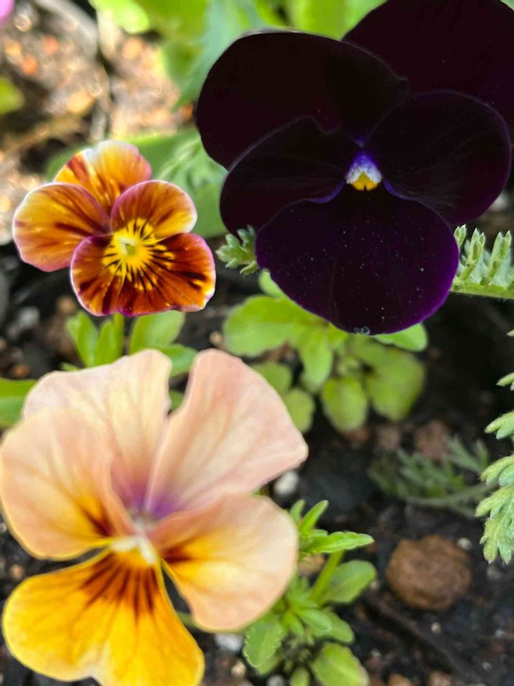 種蒔きビオラ混植しました♥︎ブラックビオラは輸入種子です✨退色感のない漆黒に近い黒色で私としては及第点ですが…👌いかがでしょうか?かぷりんさん?🤔
