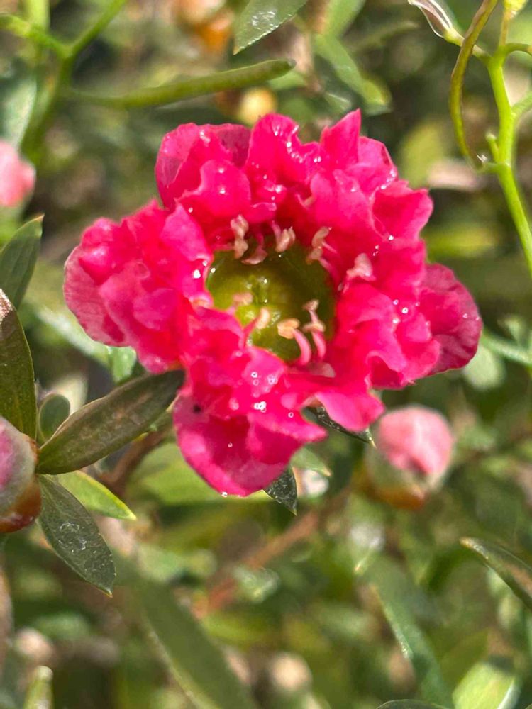 小さい名なしの苗があったので、お会計の時に聞いたらメラリュウカ、とのこと。あらラッキー、と思っていましたが、成長するにつれ何となく?を感じつつ、咲くまで気づかず😅
