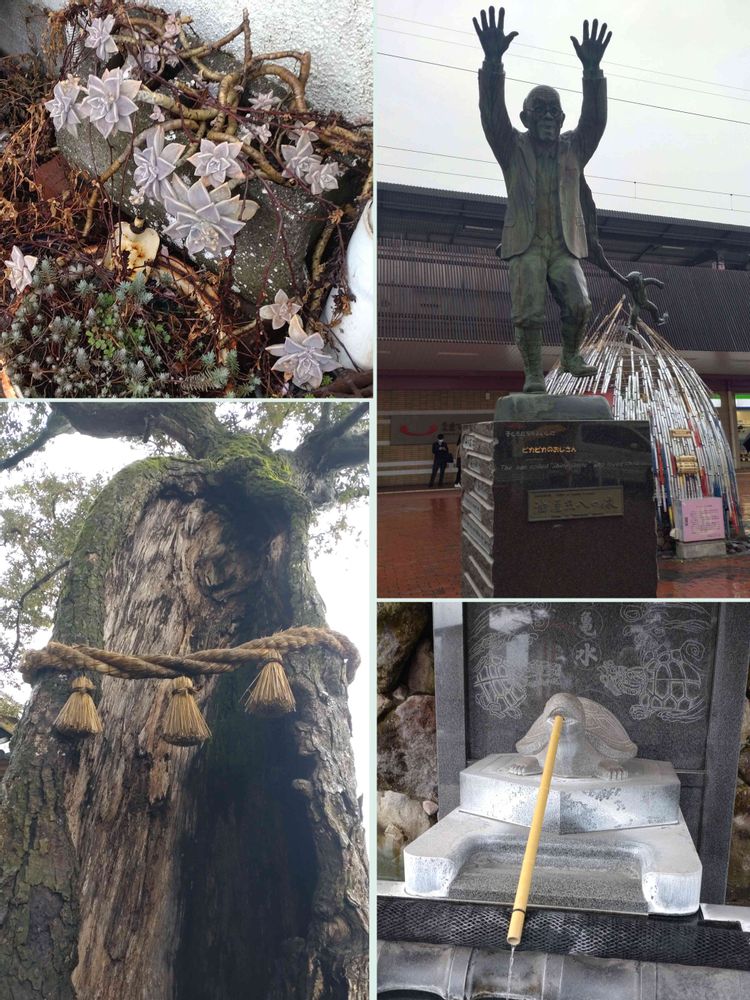 こちらは別府駅と八幡竃門神社。樹齢500年の御神木魂依の木🌳