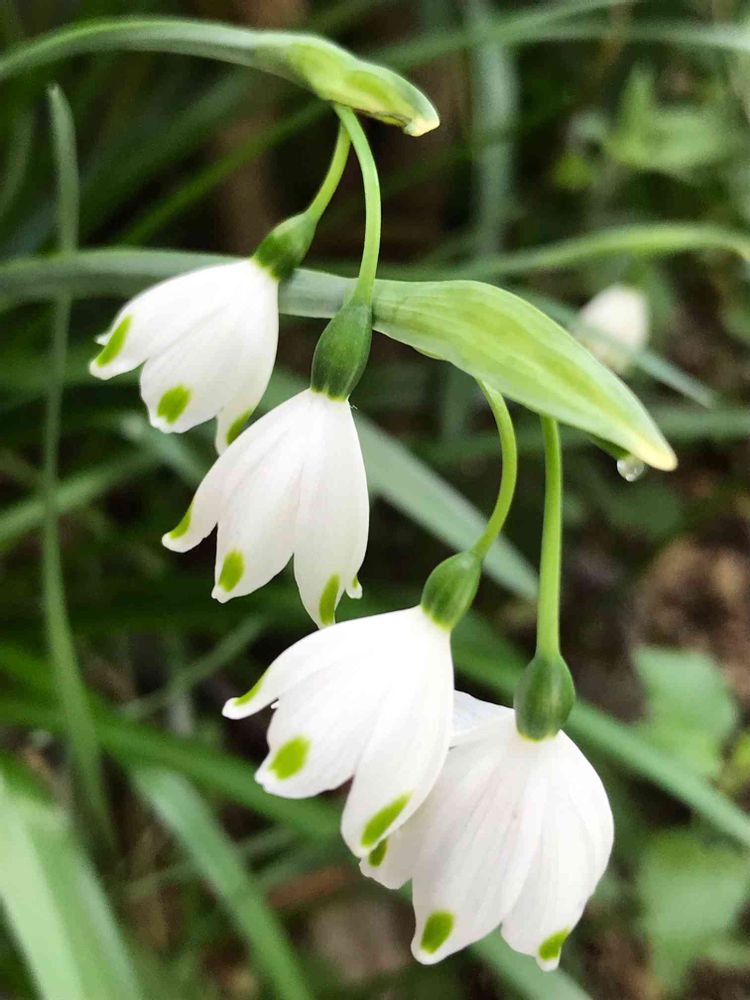 スノーフレーク、思い出のある大好きなお花です。スズランのような花びらに、緑のドットがキュートです🤍🤍💚