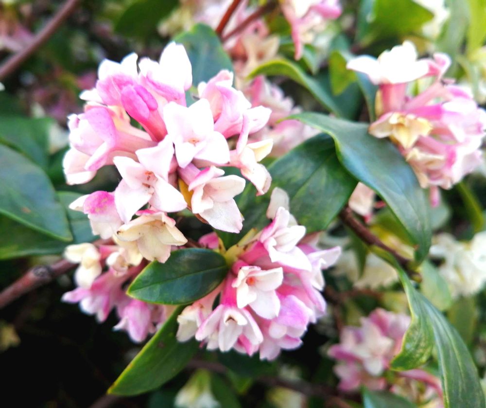 実家の庭の「沈丁花」も今が見頃で、その名の由来通り沈香に似た甘く芳しい香りが辺りに漂っています💮