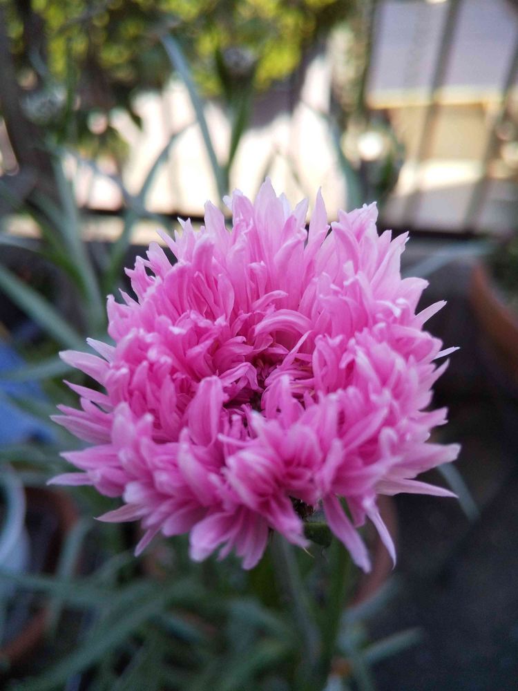 種から育ったヤグルマギク、最初はピンク色の花でした。