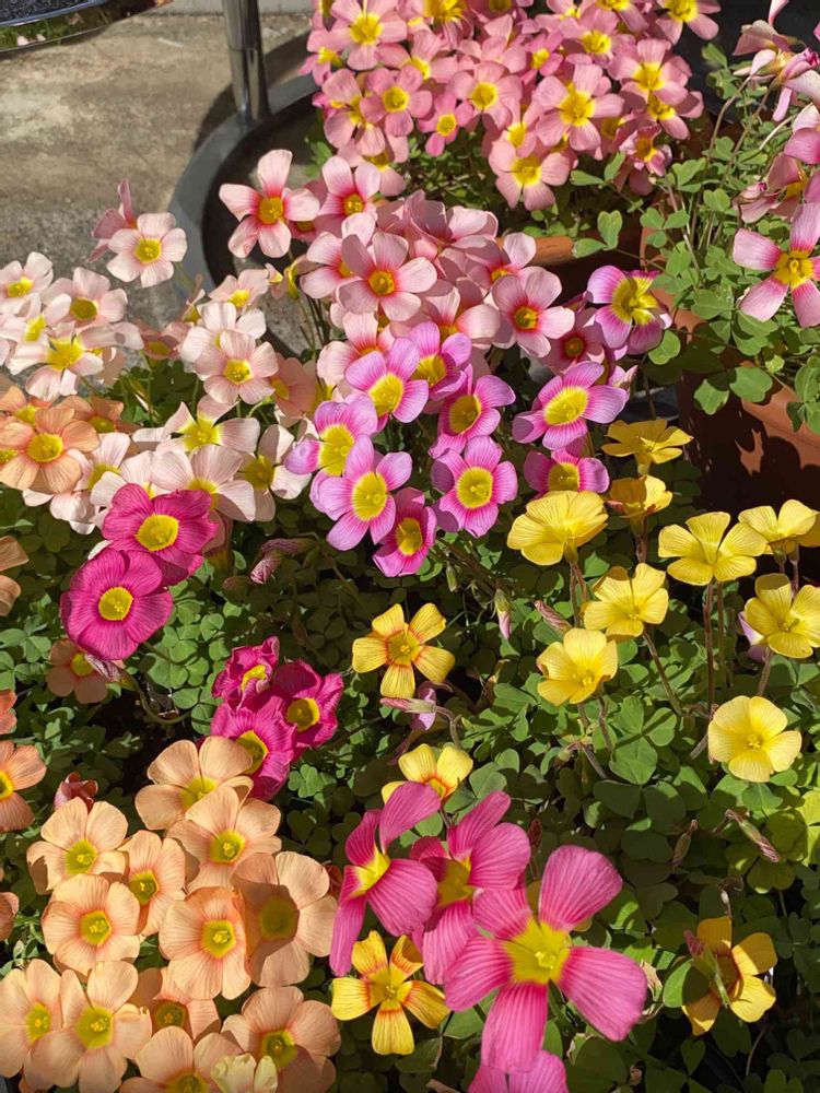 オキザリスを中心に、小さな庭で花を楽しんでいます。