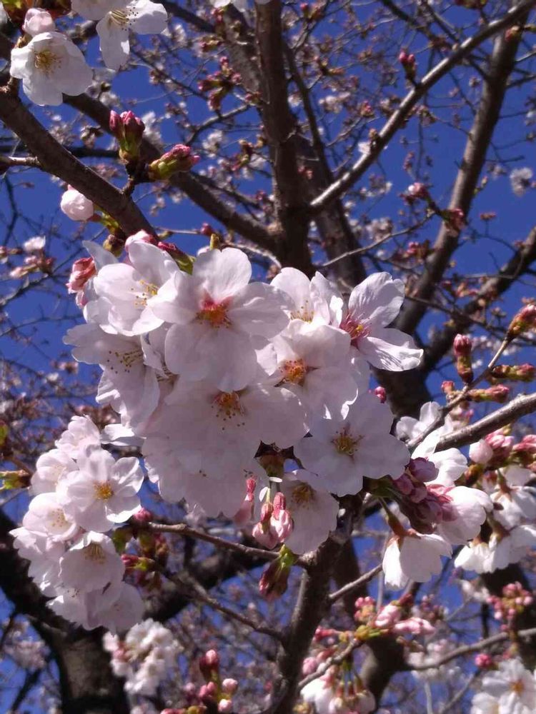 まだ二分咲き位で今日は暖かく青空に映えて綺麗🌸