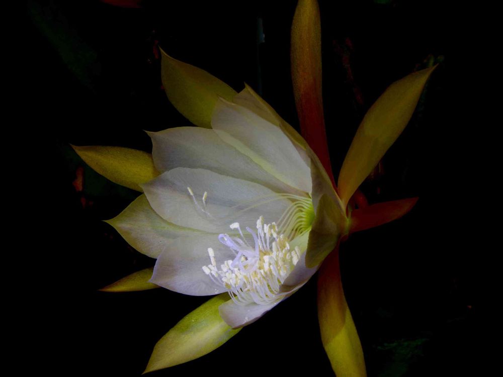 薄クリーム色のクジャクサボテン開花