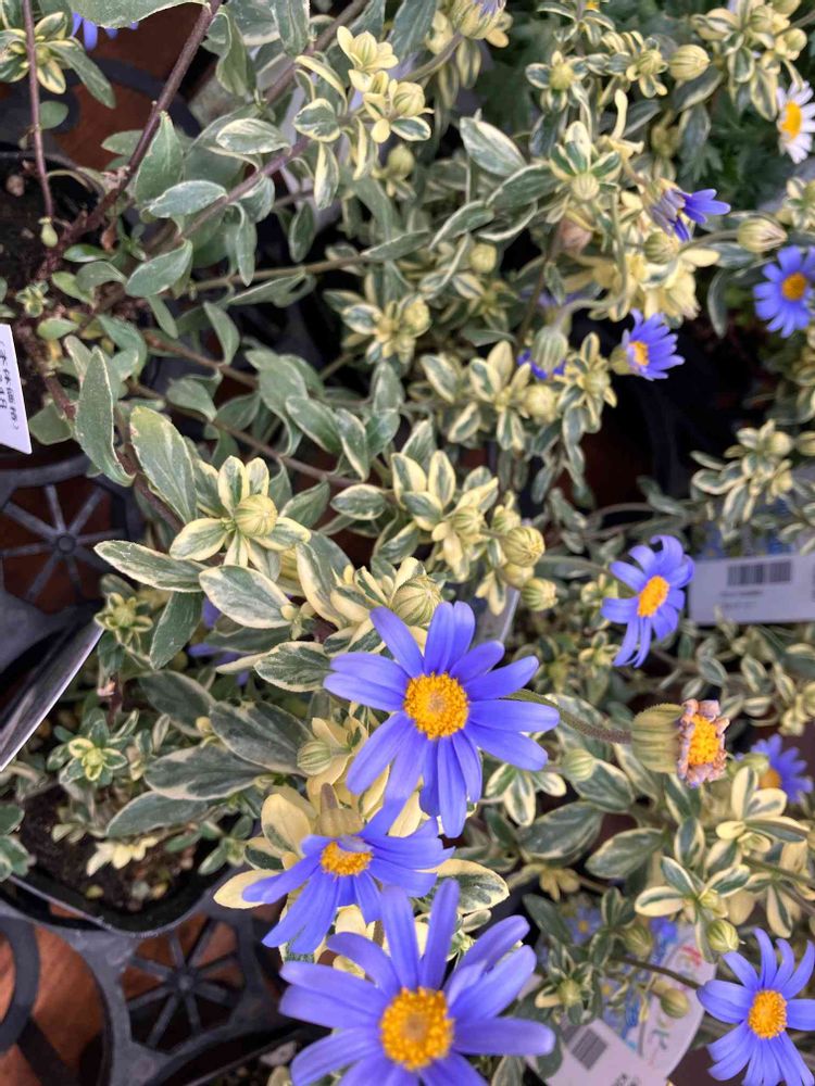 ホームセンターへオクラの種を買いに🚶可愛らしいブルーディジーを見かけました。