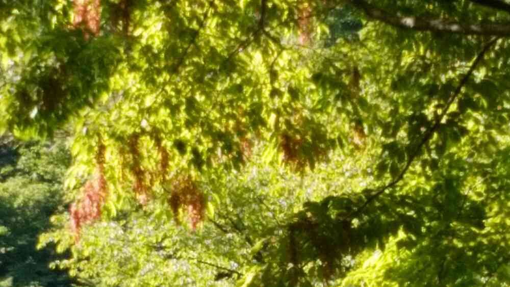 これ何の木だろう、赤っぽいところは花だと思うんだけど(~。~;)?大きい木でした。