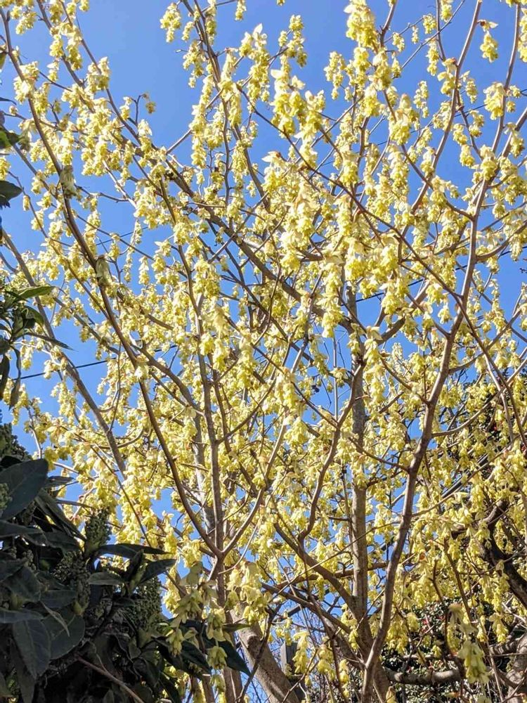 先程のクリスマスローズの並びには見上げた土佐水木が満開でした