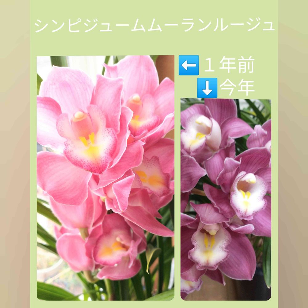 以前、他のシンピジュームだけど、ピンクが黄色に近くなったことがあって、ビックリしました🥳🎶