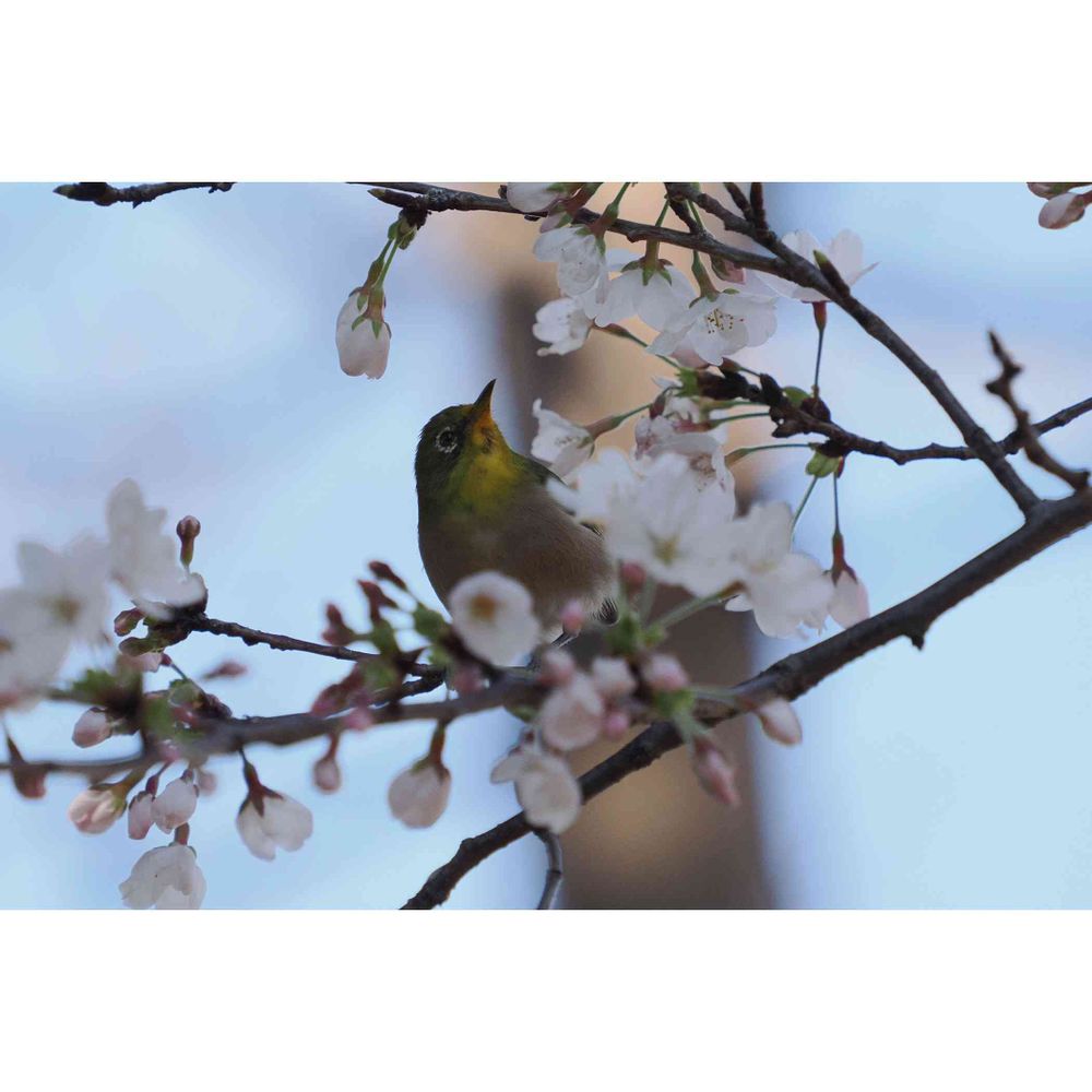 メジロさんの群れが花の蜜を吸いにきていました!!