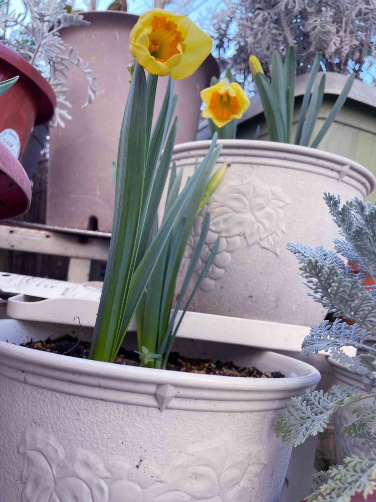 令和5年3月20日(月)🔷🔹☀️🔹🔷晴れ🔷おはよー^_^ございます 昨日の昼間ほころびはじめた水仙のツボミ 苦手な下向きに開いて😅撮りにくい📸けど 咲いてます😘