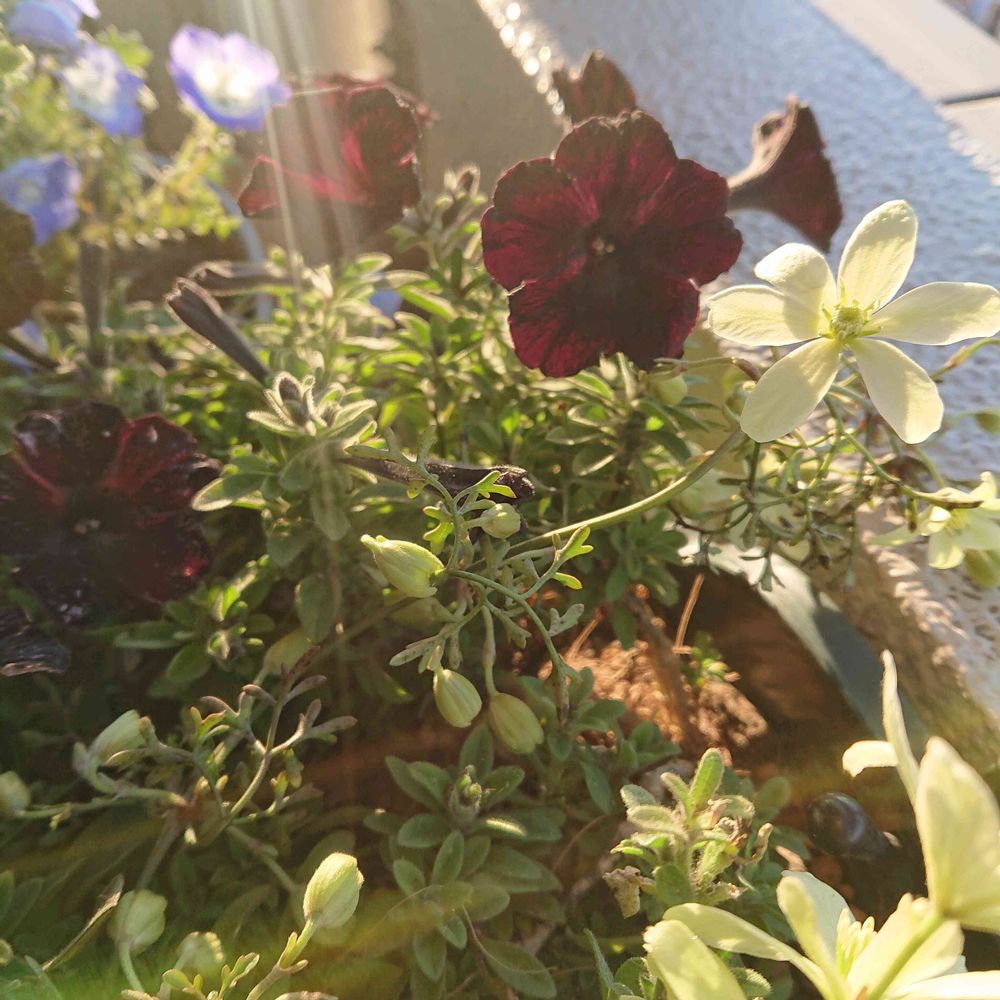 バルコニー/ベランダ,クレマチス ペトリエイ,ペチュニア 黒之瀬戸の投稿画像
