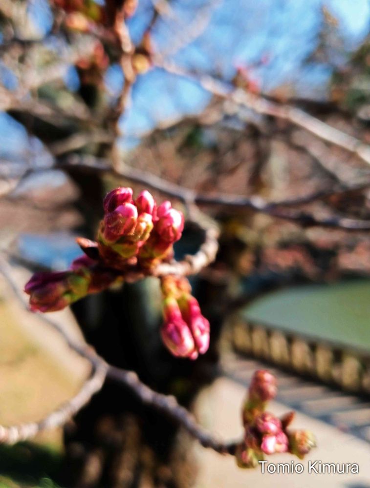 散歩道(京都丹波亀岡 南郷公園)のソメイヨシノの蕾が、膨らんできました。