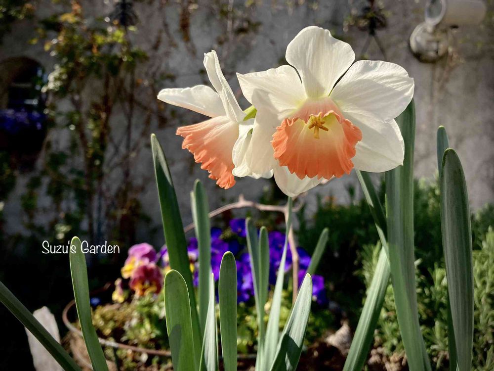 カワイイ水仙ですね💖よく見るのは真ん中黄色、サーモンピンク😍あまり見た事がないような〜そして丈夫なんですね〜💪