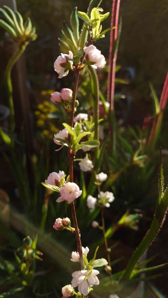 小枝にびっしりとお花が付いて〜🌸🌸🌸🌸🌸🌸フワフワ可愛いピンクデスね〜実物見れて良かったです〜来年も花数増えますように〜こちらもう、暖かいので、満開デス〜ありがとう〜🌸🌸🌸🌸🌸🌸🌸