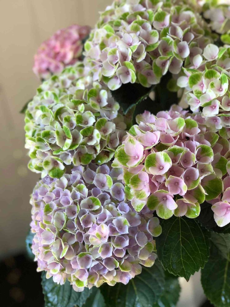 母の日にもらったアジサイ マジカルシリーズ、緑の点々がでて、色が変わってきました😊