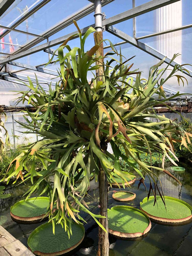 咲くやこの花館。でっかいビカクシダとオニバス。