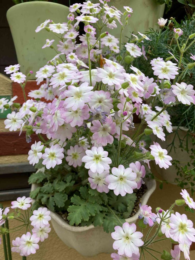 お散歩て雲南桜草を上手に咲かせている家発見‼️いつかここまで大きくする方法を聞きたいようです⁉️私は大好きなのに、いつもお⭐️にしてしまいます🙅♀️