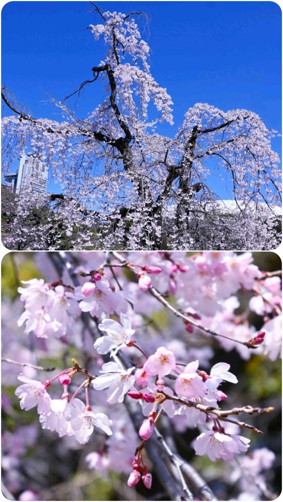 小石川後楽園のシダレザクラ、見事に満開でした〜🙌🌸🌿