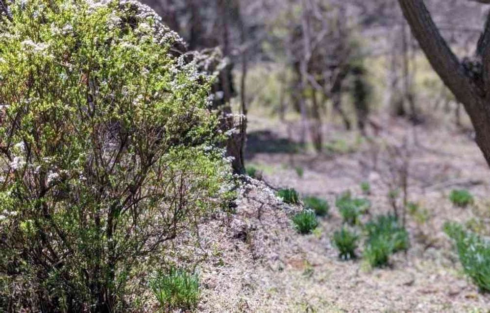 斜面の栴檀の高木の根元から広がる水仙群には蕾がいっぱい!