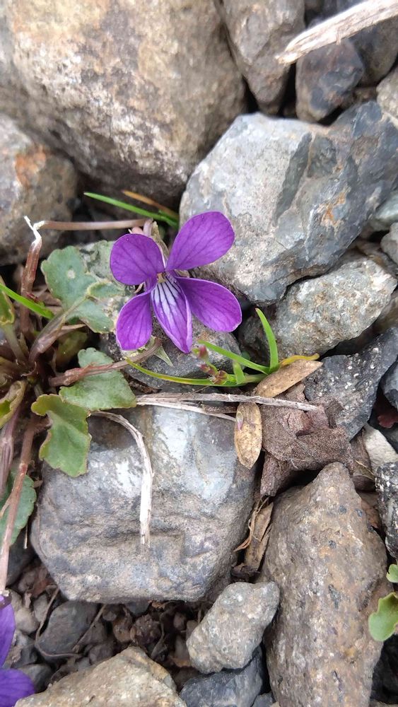 石ころのあいだからスミレが咲いています。💜の可愛いスミレ!🥰