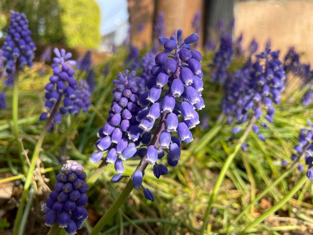 夕方の庭にて😊今日もムスカリに癒されました🎶🎶🎶