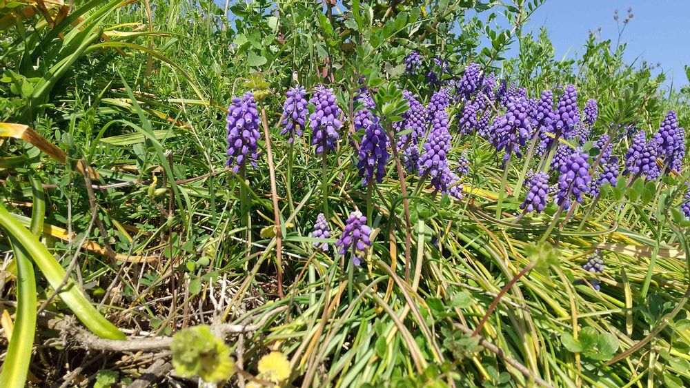 池の淵に毎年咲いている紫のムスカリ🎵春が近いですね☀️