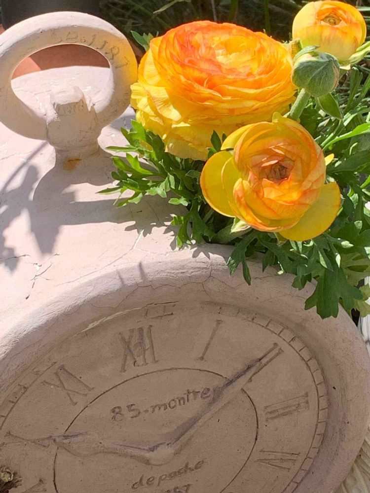 黄色いラナンキュラスさん😊だんだんオレンジ色が入ってきてビタミンカラーに😊黄色やオレンジいろは明るくて元気もらえます😊ビタミン注入ー🫶🍊🍋