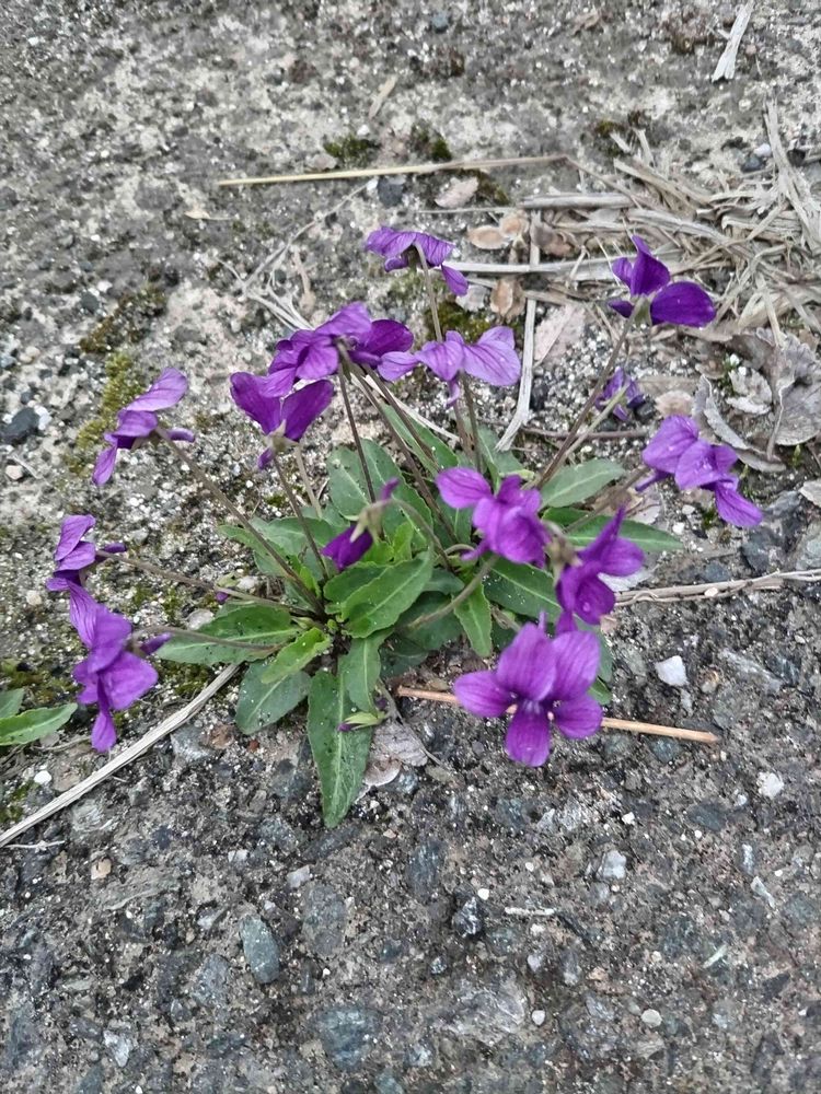 🌸ワンコの散歩途中にコンクリートの境目に咲いてました。