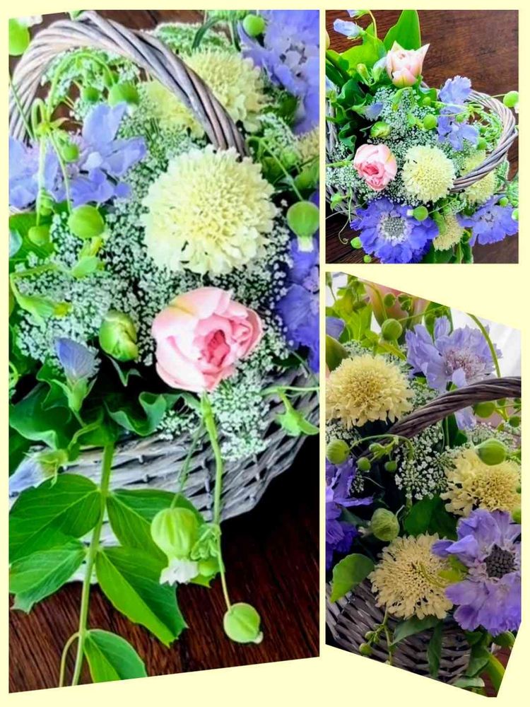 淡いブルーのお花が効いた、春らしい爽やかなアレンジ、素敵ですね💖