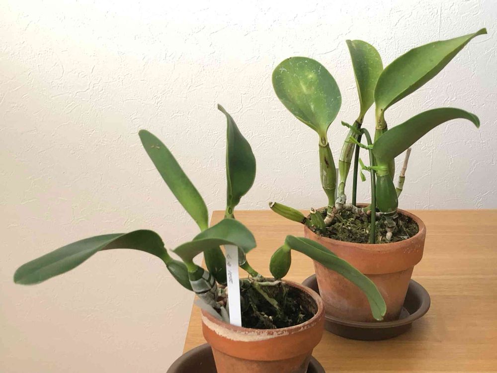 手前の株は新芽が鉢縁に当たって植え替え予定。
