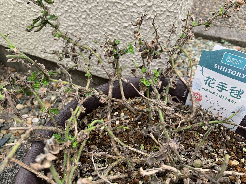 「あーあ枯れちゃった、片付けないと」と思いながらほったらかしていたけど、枯れてなかったのね!😅新芽が🌱