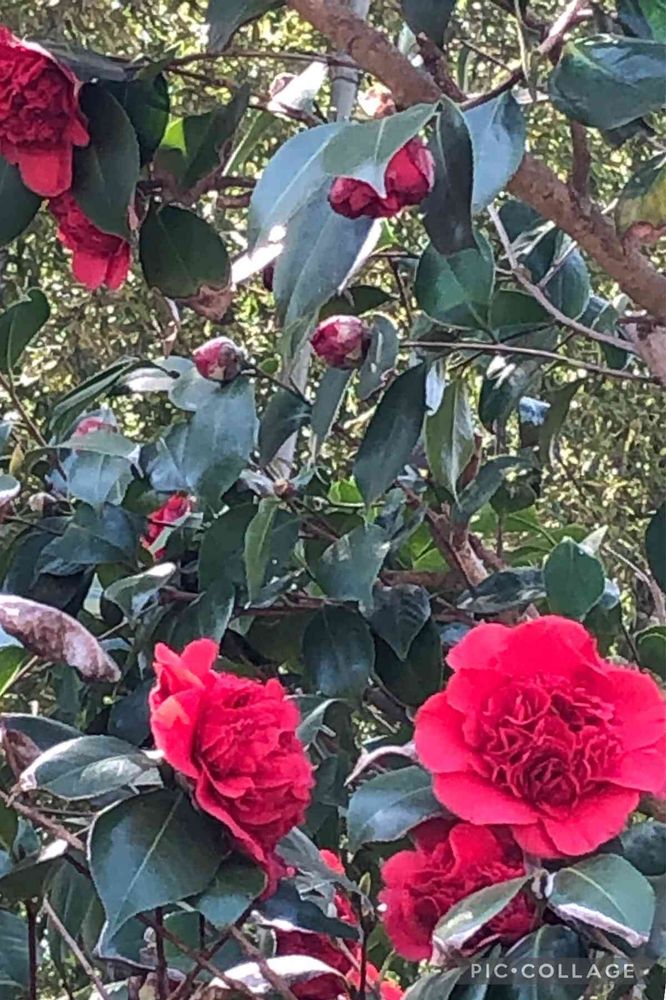 蕎麦屋さんの前のお家の庭に立派な椿の木❣️