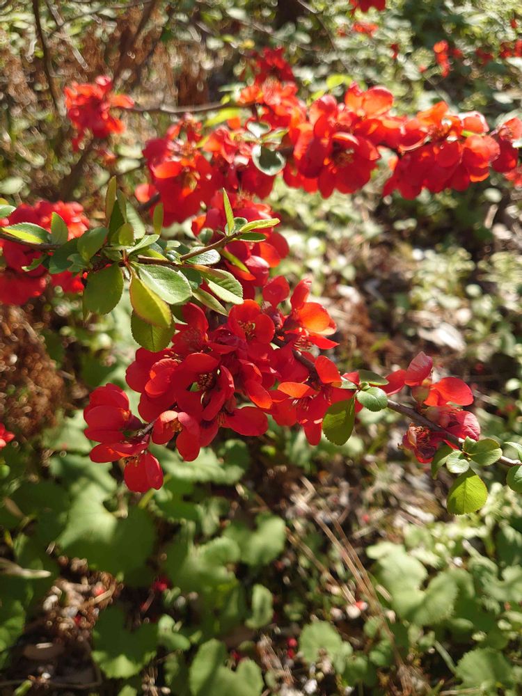向島百花園の赤い木瓜の花が綺麗でした〜😄❣️❣️