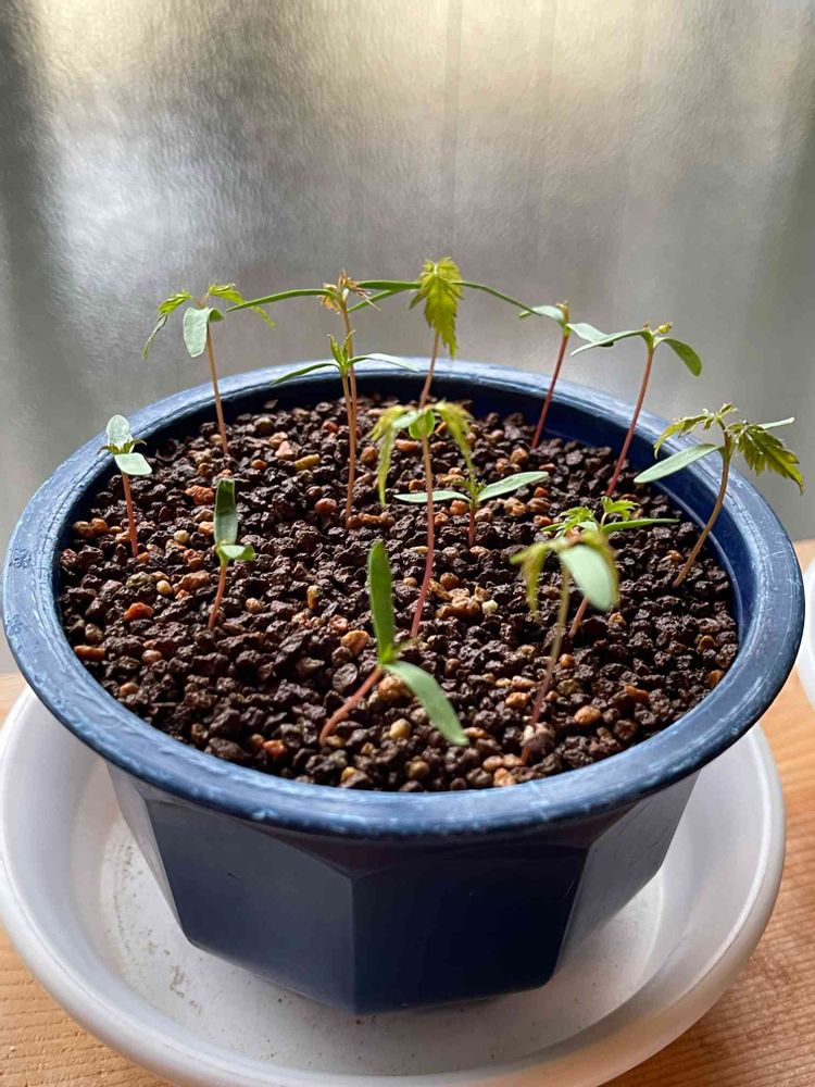 土を捨てようと😃今頃もみじが発芽してきたよ!何?もみじ?と思い出しながら!侍ジャパン!サヨナラ!に感動😭