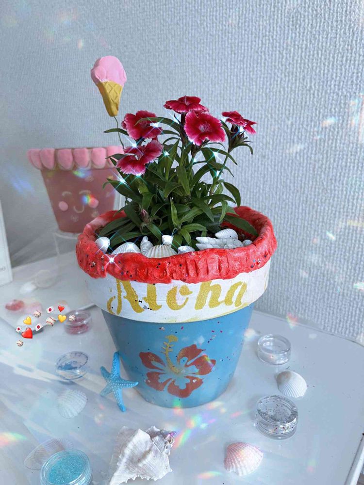 リメ鉢派手 🤣 キラキラも散りばめちゃった。