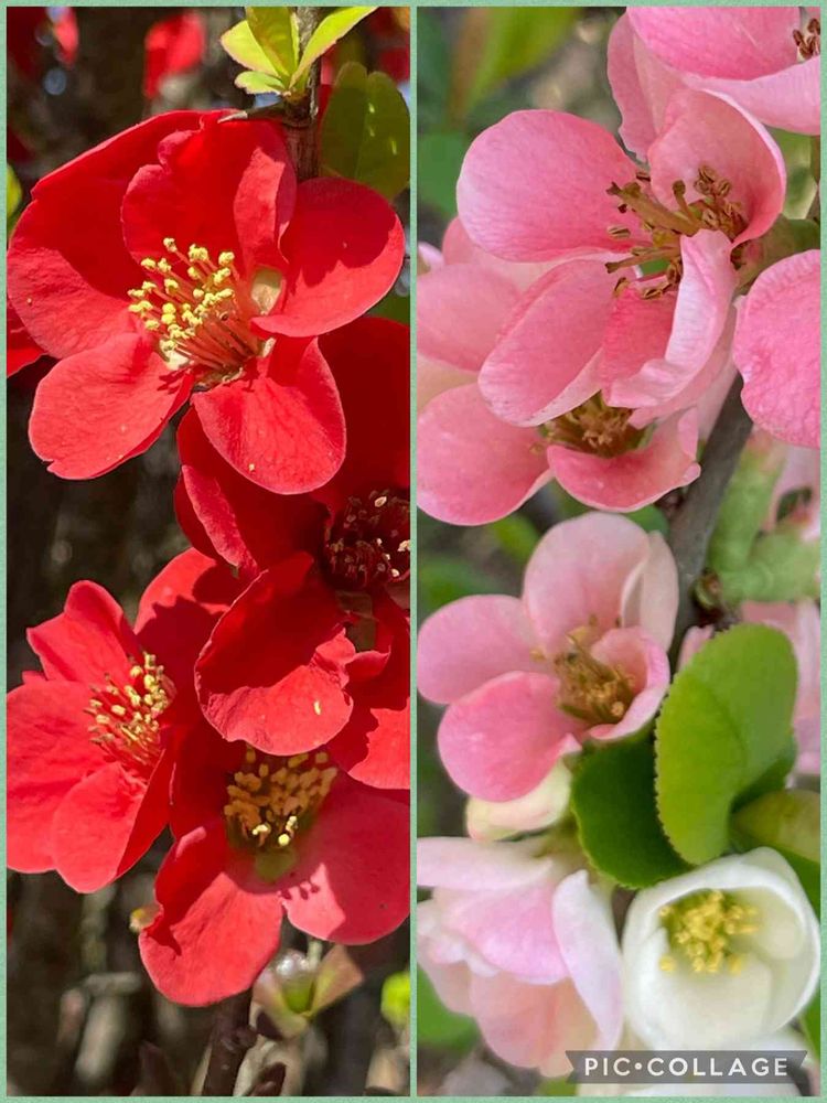昨日の公園での花散歩🚶♀️🌸ボケのお花がたくさん咲いてました❤️🤍💗