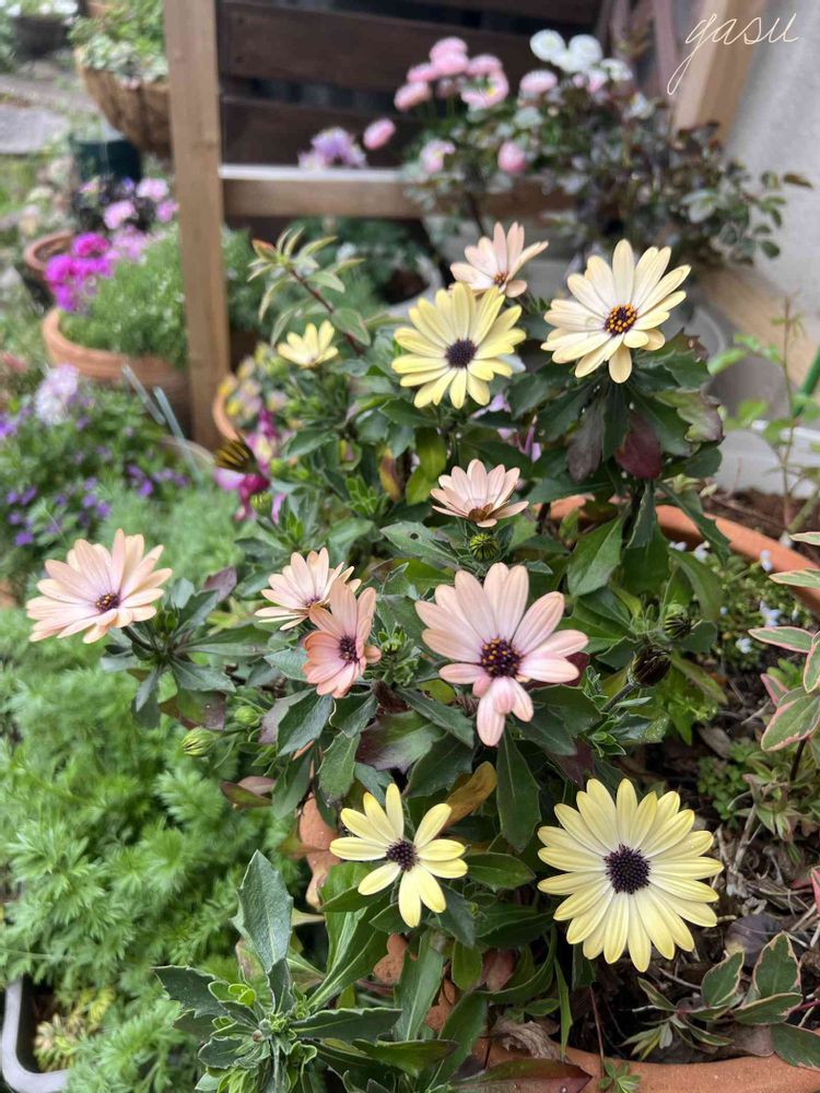 先週投稿したオレンジのオステオさんの後ろに居た2年目の寄せ植えです✨