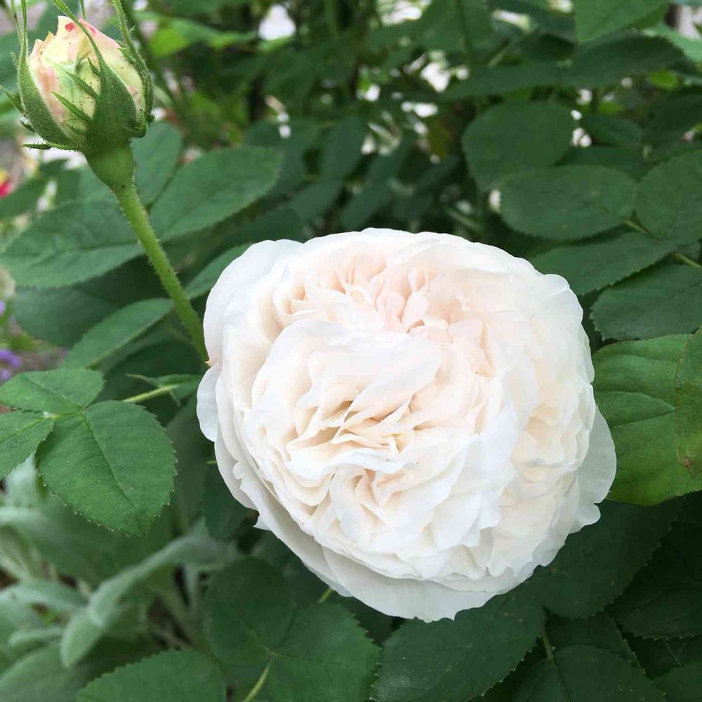 陰にブランシュフルールが咲いていた。あいかわらずふりふりさんだね。ピンクが飛んじゃってほぼ白だわ。
