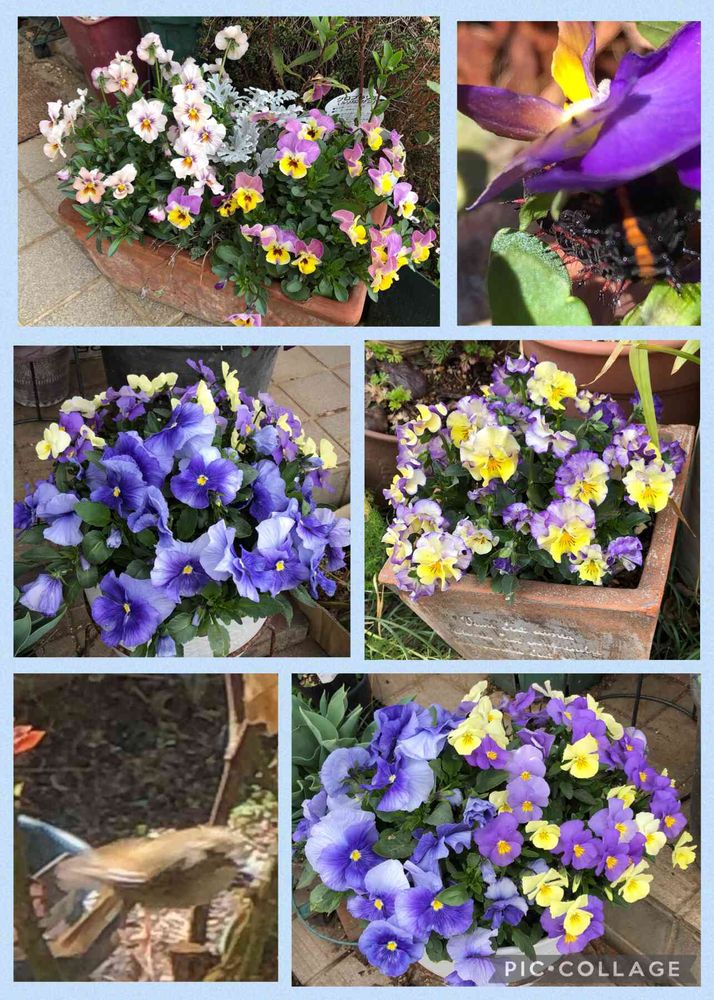 ⬅️昔からの大きなパンジーが寒さに強く、葉を覆う程賑やかです✌️💙💙💙✌️
