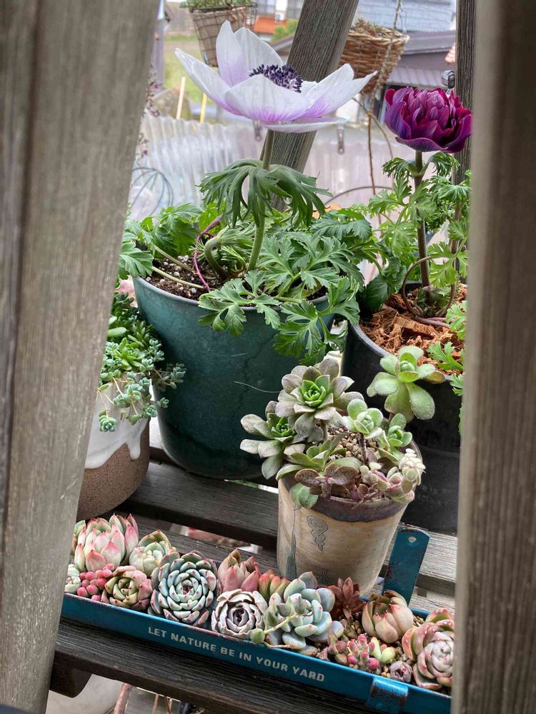 ツリーシェルフから覗くと2鉢のアネモネ🪴
