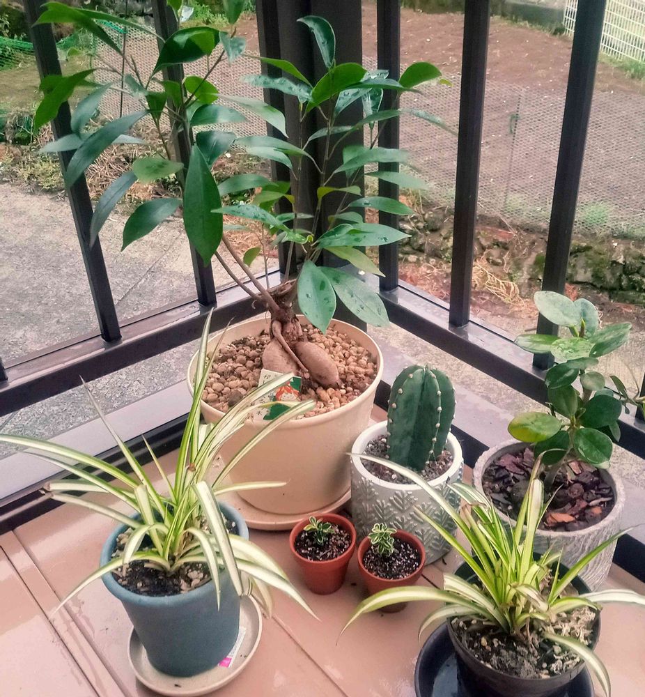 オリヅルランは霜で葉っぱ全滅からの復活🌱✨柱サボテンも初の雨に喜んでる(~ ̄³ ̄)~