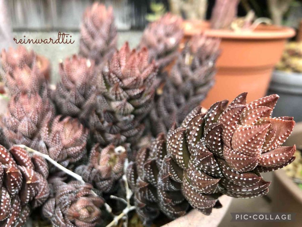 元々グリーンの子が、ほんのりピンク色に紅葉したまま春を迎えようとしています☺️