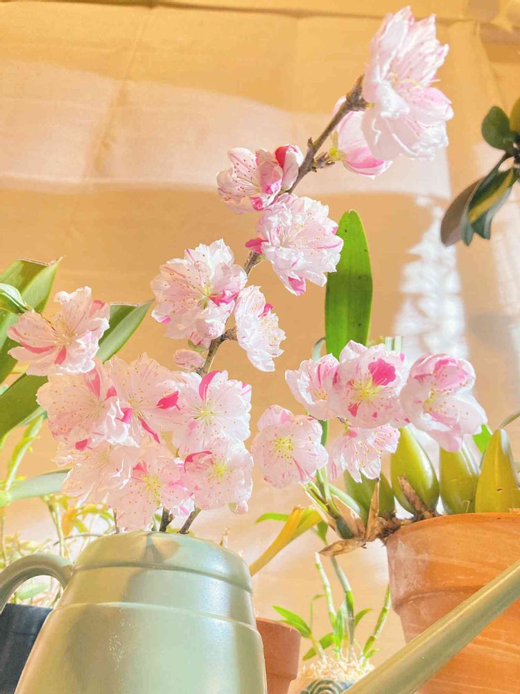 職場でいただいてきた花桃♪色合いがすごいステキ(*^^*)挿木にしたら根付くかなぁ?(´・ω・`)とりあえずメネデールの水に入れてみる(*^ω^*)