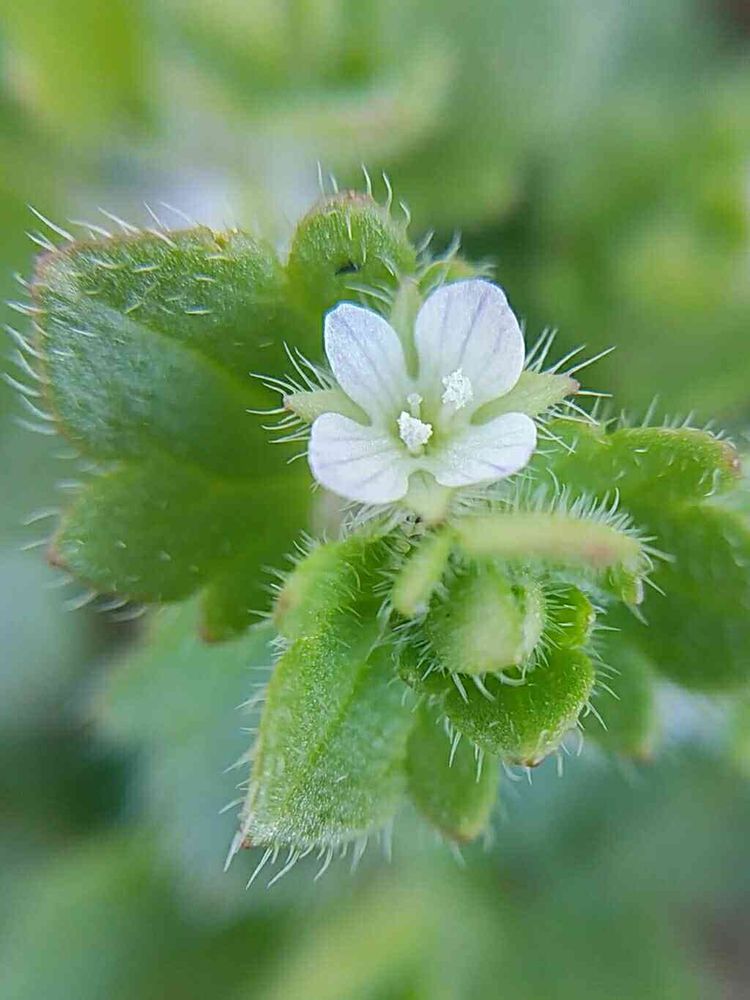 蕚や葉っぱに、白くて長い毛が生えているのが、肉眼でも見え、花も小さいです。