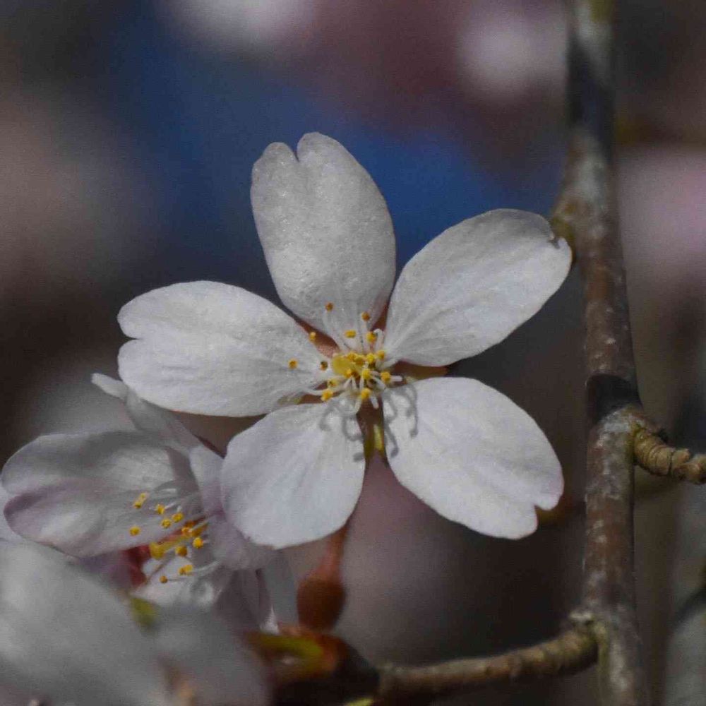 【研究学園の花々】2023年3月20日、研究学園近くの道路沿いのしだれ桜が可憐な花を咲かせていました!