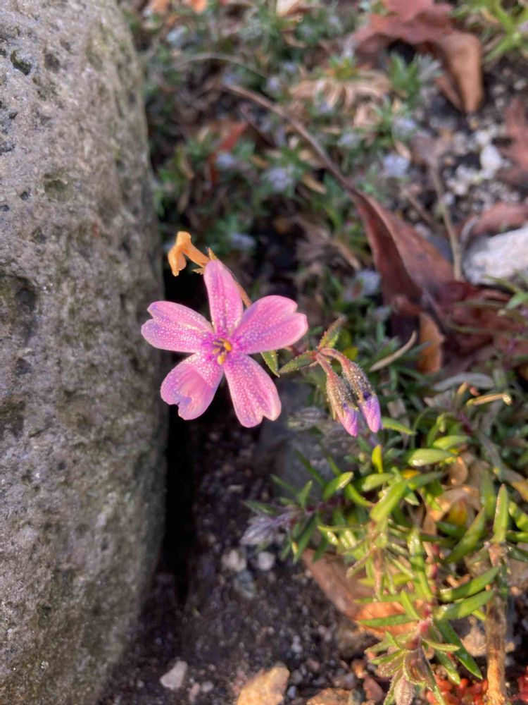 ♡の花びらが朝日に照らされいました。いろいろな芝桜が見られるようになりました。